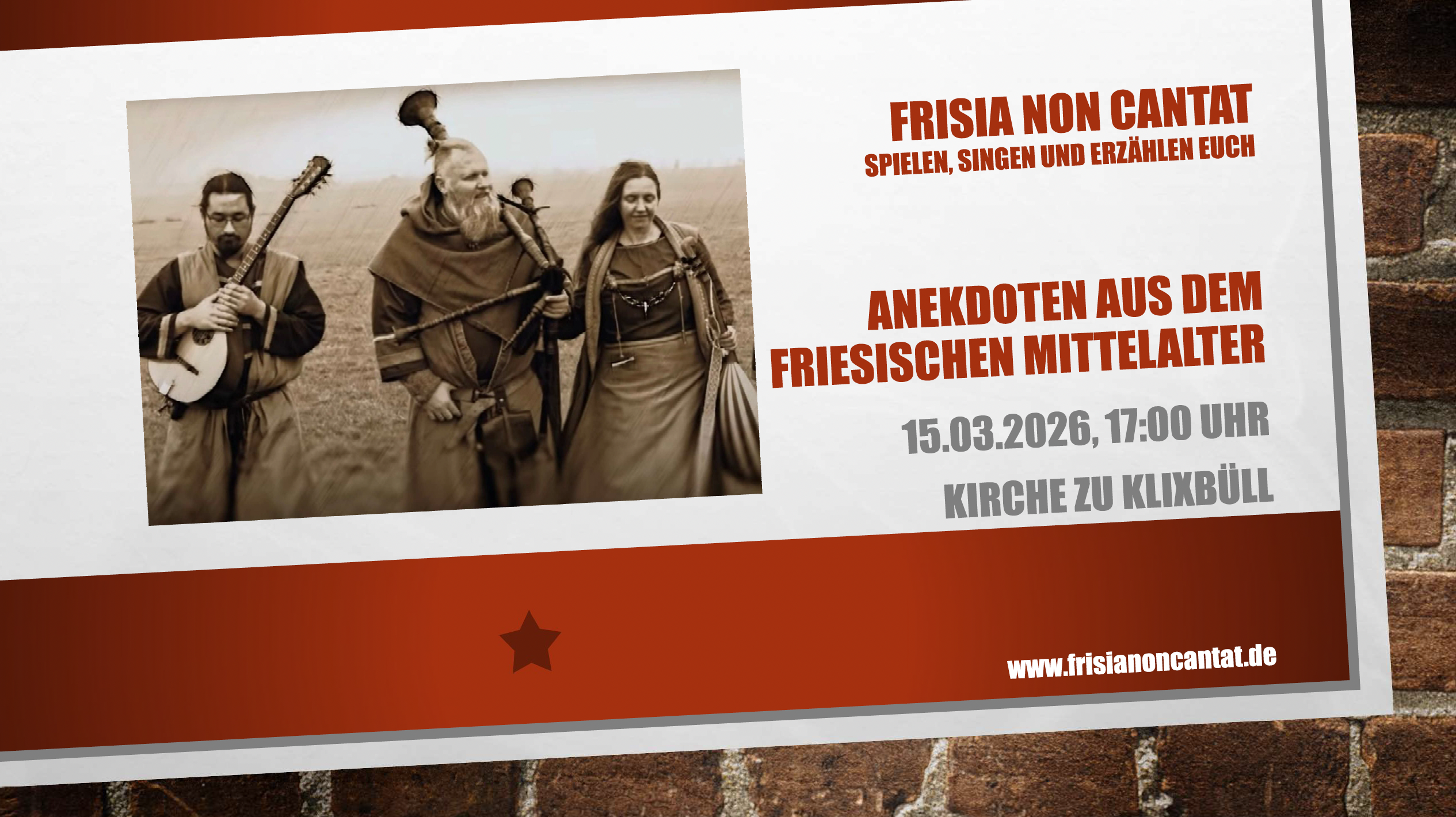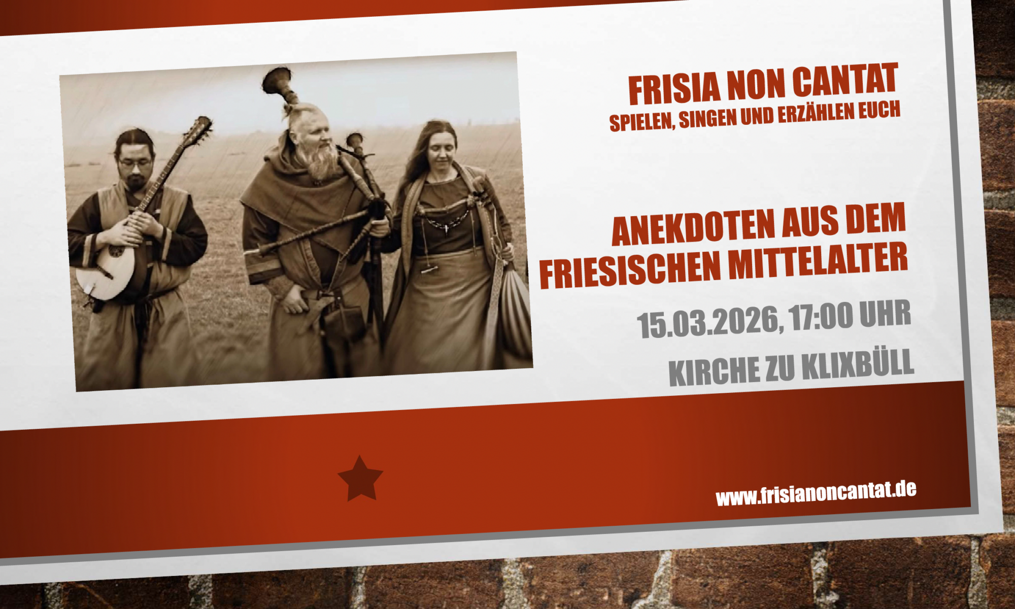 Am Sonntag, den 15. März 2026, um 17:00 Uhr lädt die Band Frisia non Cantat zu einem besonderen Konzertabend in die Kirche zu Klixbüll ein.